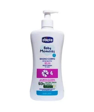 Гель для купання “Без сліз” з екстрактом мальви та гліцерином Chicco Baby Moments Relax Body Wash, 500ml