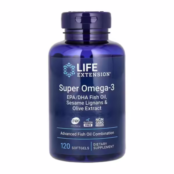 Super Omega-3 EPA/DHA Fish Oil Sesame Lignans & Olive Extract — це риб’ячий жир, містить жирні кислоти ЕПК та ДГК, поліфеноли оливи та інші корисні речовини для зміцнення здоров’я серця, мозку й інших органів.